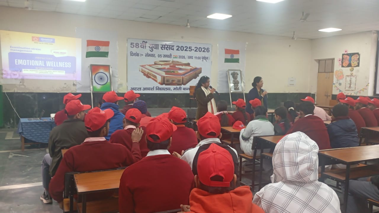 Students of Atal Adarsh Prathmik Vidyalaya, Moti Bagh, New Delhi, participated in an Exam Stress Management Workshop conducted by the Sleepwell Foundation on January 7th 2026. The workshop benefited 62 Students from Classes 9 to 12 and was designed to address exam-related anxiety and help students prepare for upcoming Board examinations.